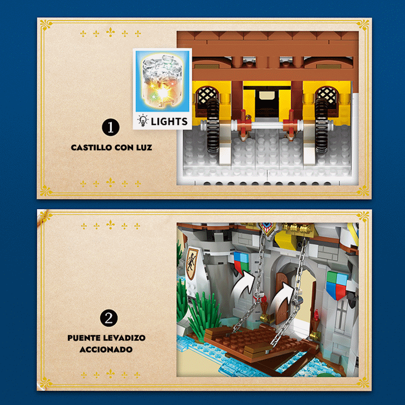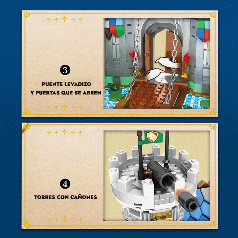 Descubre la majestuosidad del Castillo del Rey León, un impresionante set de construcción que te transporta a un mundo medieval lleno de historia y fantasía. Con más de 2.500 piezas, este detallado castillo incluye torres, murallas, puente levadizo, calabozos y estandartes reales, ideal para quienes disfrutan del armado minucioso y la ambientación épica. Perfecto tanto para niños mayores como para coleccionistas y amantes de los modelos de arquitectura, este set garantiza horas de entretenimiento creativo y una imponente pieza de exhibición una vez completado. Necesita Pilas INCLUIDAS
